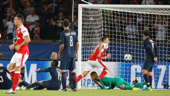 Alexis Sanchez delivered his 78th-minute equalizer (shown here) to lift Arsenal to a 1-1 road draw with Paris Saint-Germain. Edinson Cavani scored in the opening minute for the hosts.