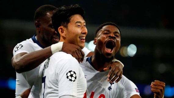 Son Heung-min (47'; that's him, center, celebrating with teammates after scoring), Jan Vertonghen (83'), and Fernando Llorente (86') each scored once as Tottenham Hotspur dominated visiting Borussia Dortmund 3-0 in the opening match of their two-game series.Getty Images photo